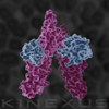 Epidermal growth factor (EGF) receptor- tyrosine kinase domain dimer shown with plasma membrane and extracellular EGF domain (artistic composite)